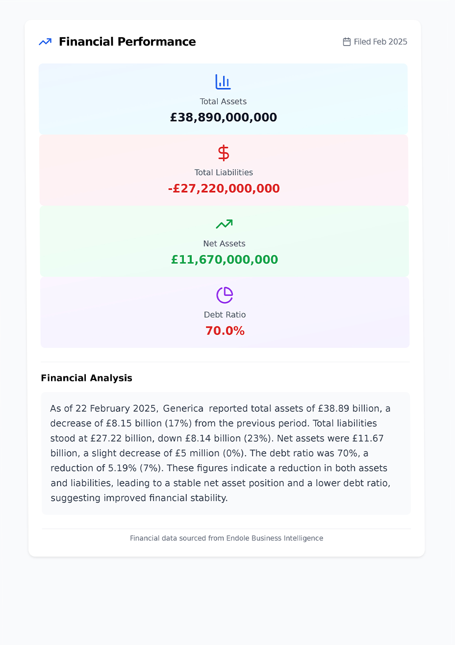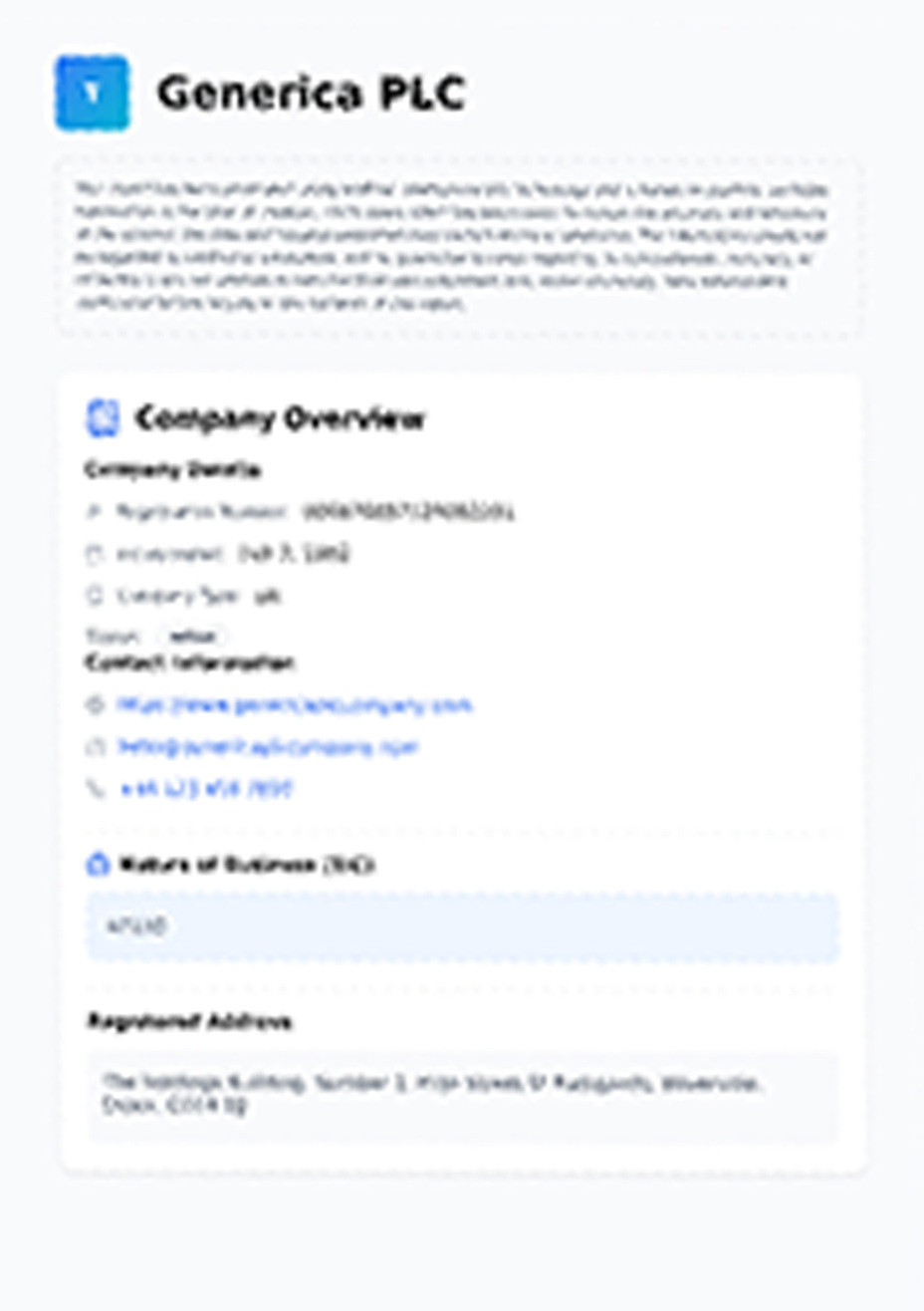 Each Intelo report is designed to provide a structured, easy-to-understand view of any company. Powered by AI-driven analysis, the report brings together financial indicators, leadership insight, reputation data and competitive context in one clear, professionally formatted document.