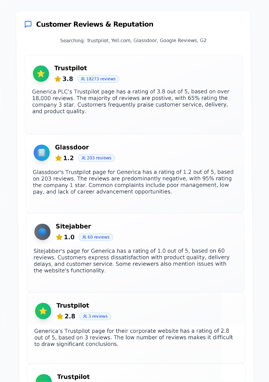 Understand how the company is perceived in the market. Intelo gathers and organises publicly available feedback and reputation indicators to provide a balanced view of credibility, trust and customer sentiment.
