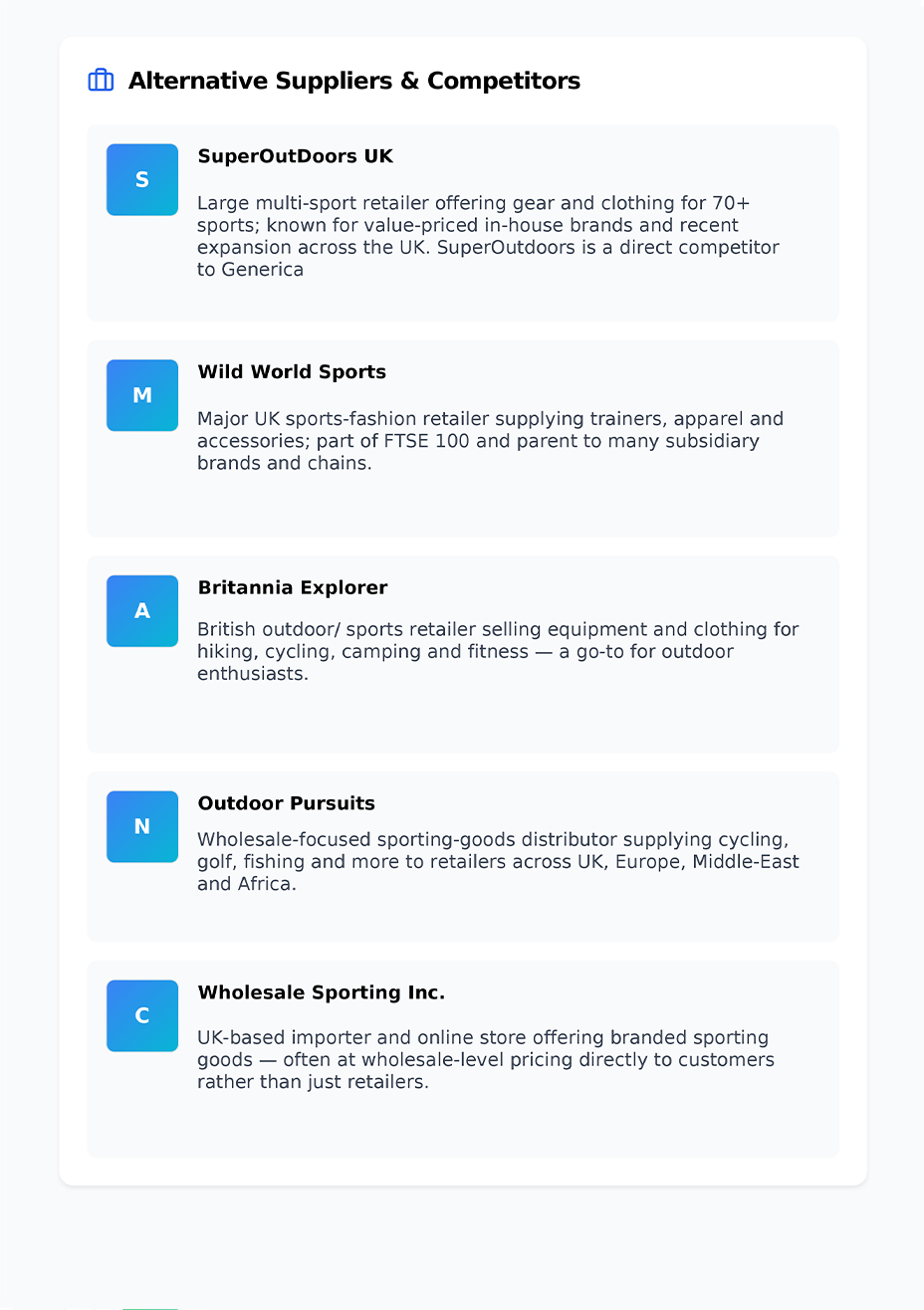 Look beyond a single organisation. Intelo identifies relevant competitors and alternative suppliers, offering comparative context that helps you evaluate positioning, explore options and recognise opportunity within the wider market.